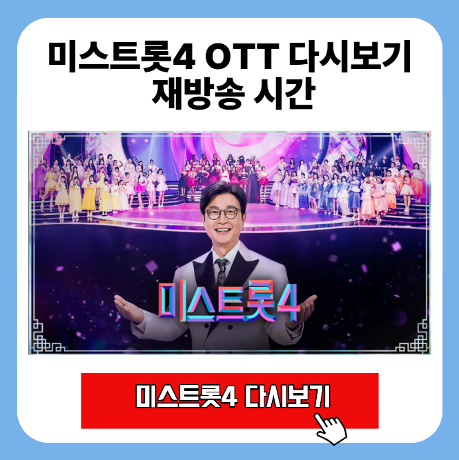 이번 글에서는 미스트롯4 OTT 다시보기 방법부터 TV 재방송 시간표,